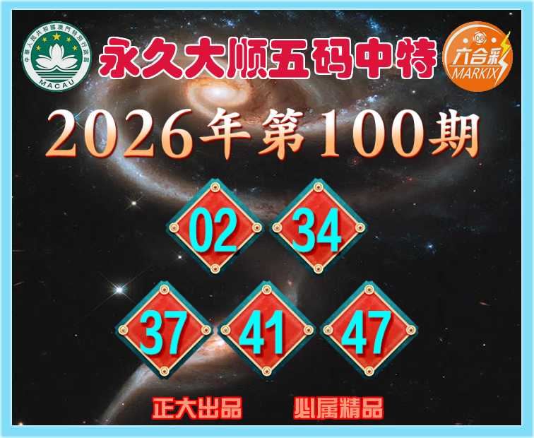 100期:『永久大顺』 🗡五码中特🗡【02.34.37.41.47】开:33
