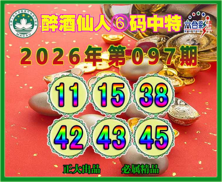 097期:【醉酒仙人】 🥽⑥码中特🥽【11.15.38.42.43.45】开:11