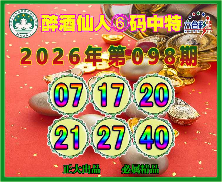 098期:【醉酒仙人】 🥽⑥码中特🥽【07.17.20.21.27.40】开:17