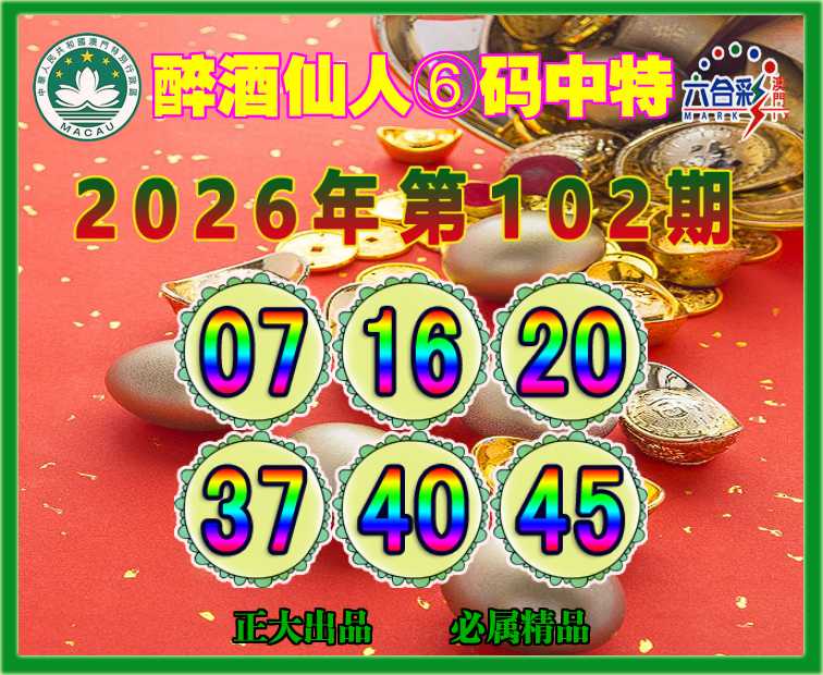 102期:【醉酒仙人】 🥽⑥码中特🥽【07.16.20.37.40.45】开:20