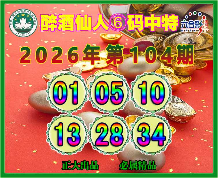 104期:【醉酒仙人】 🥽⑥码中特🥽【01.05.10.13.28.34】开:01