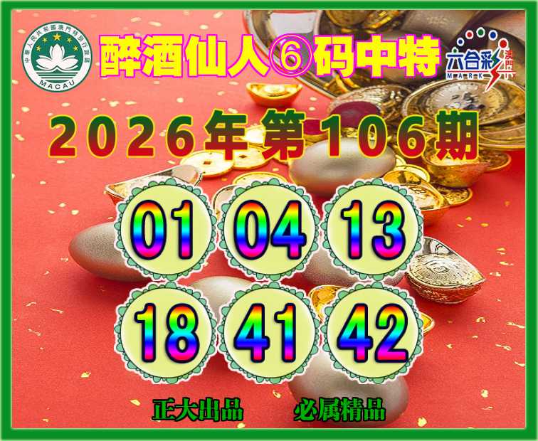 106期:【醉酒仙人】 🥽⑥码中特🥽【01.04.13.18.41.42】开:22