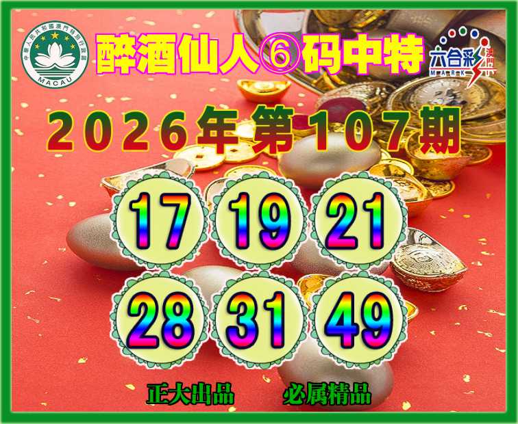 107期:【醉酒仙人】 🥽⑥码中特🥽【17.19.21.28.31.49】开:49准13:00公开验证